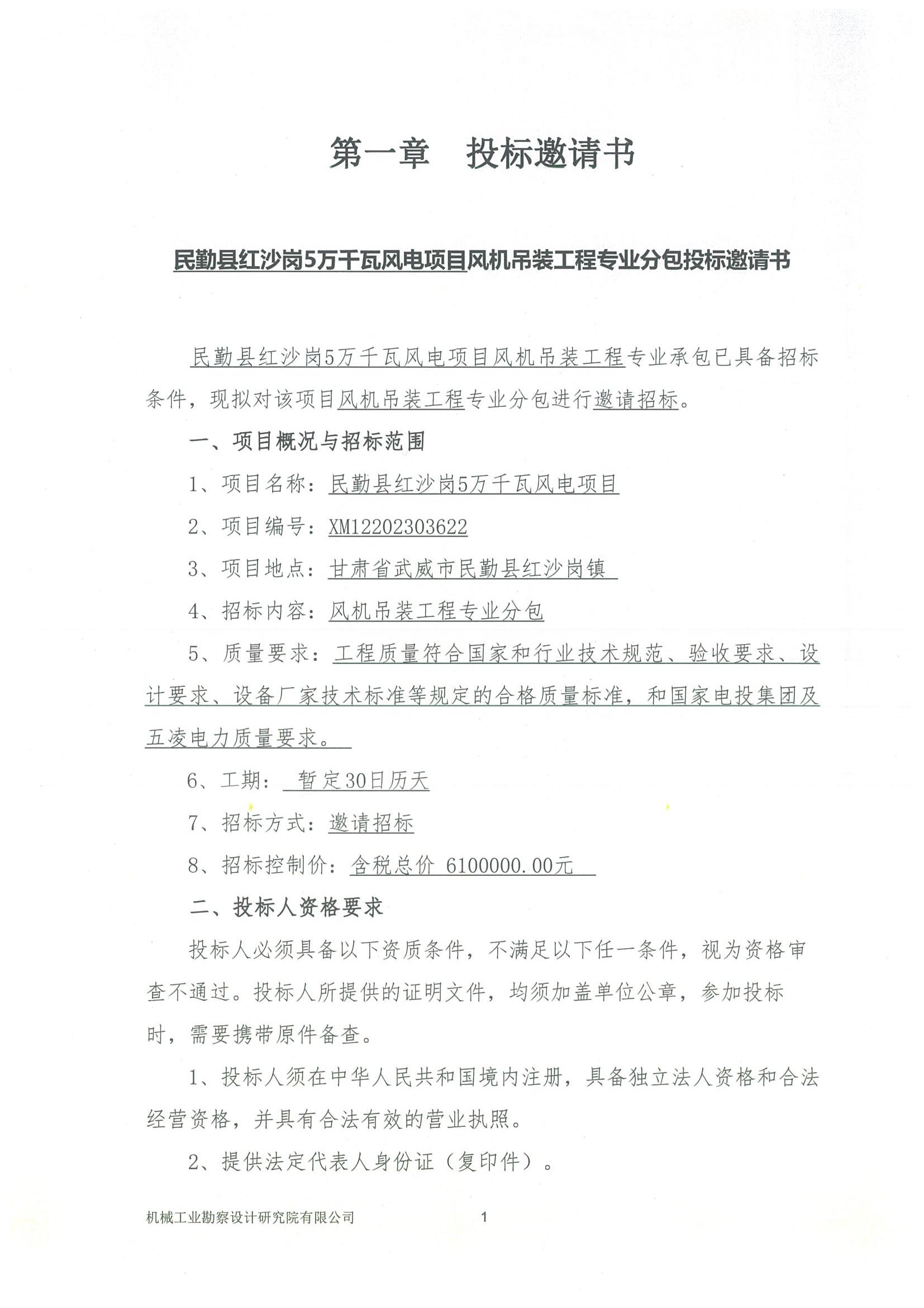 國家電投五凌電力民勤縣凌風(fēng)新能源有限公司民勤縣紅沙崗5萬千瓦集中式風(fēng)電項(xiàng)目招標(biāo)文件